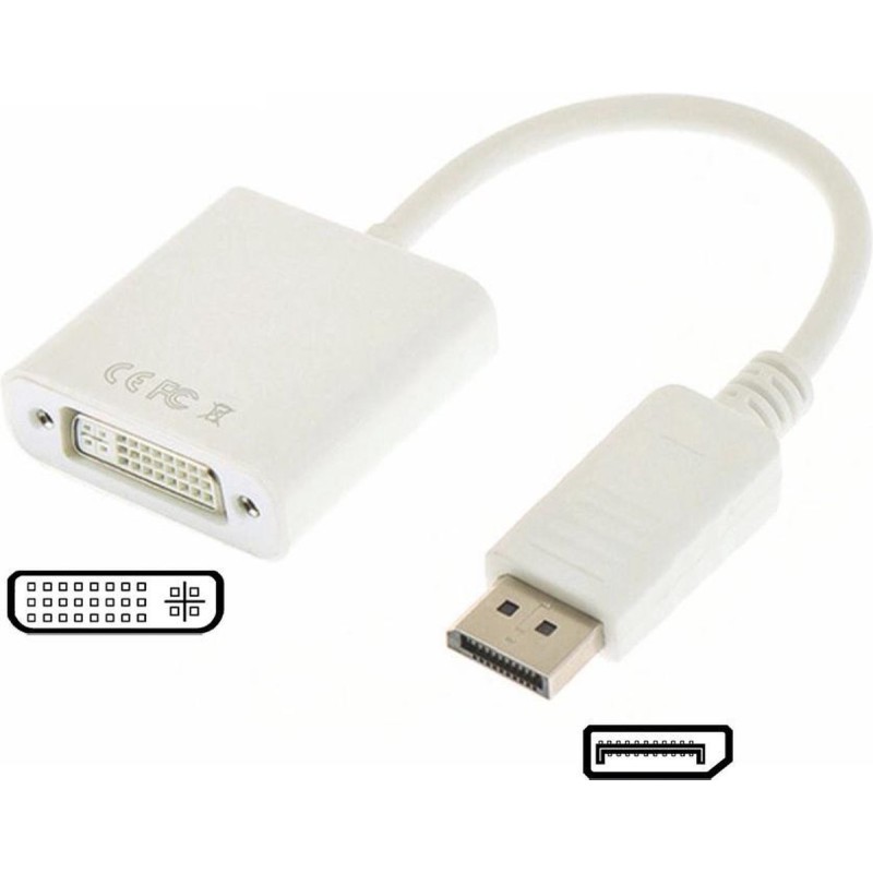 Tags: DisplayPort, DVI, Adapter, DP naar DVI, Wit, 10cm, Videoconverter