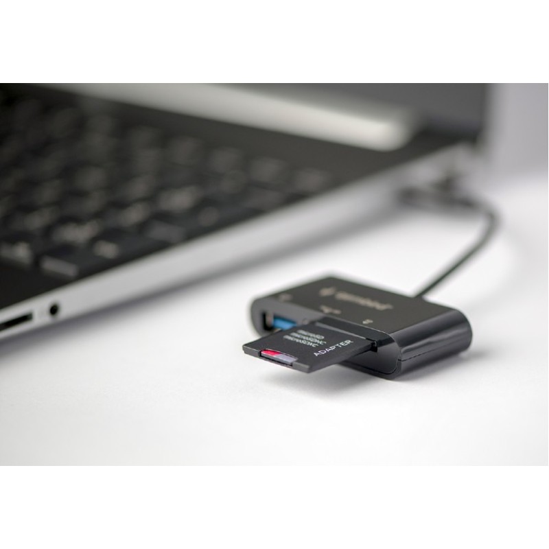 Hij is geschikt voor het uitlezen van zowel micro- als standaard SD geheugenkaarten.