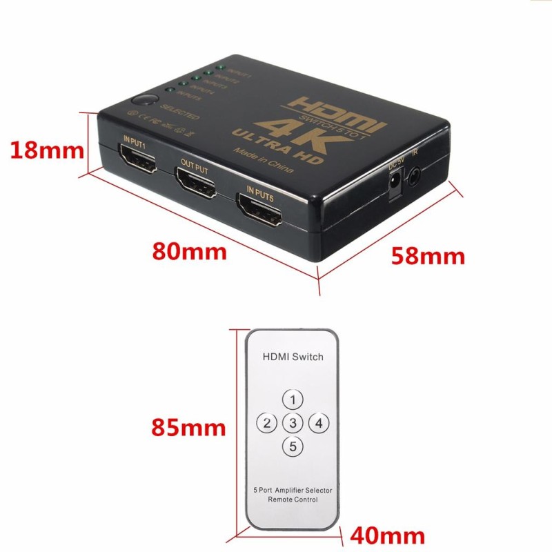 Tags: HDMI, Switch, Splitter, Hub, 5 Port, 4K, 3D, 1080p, IR Remote, HDTV, HDMI 1.4b