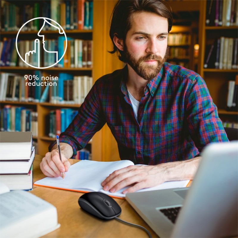 Muisstil. De Logitech B110 Silent biedt het gemak van plug-and-play, betrouwbaarheid en stille bediening van elke computer. Geniet samen met de omgeving van een geruisloze ervaring dankzij een 90% stillere muis met hetzelfde klikgevoel. De responsieve, soepele cursorbesturing biedt nauwkeurige tracking en eenvoudige tekstselectie, en dankzij het symmetrische ontwerp ligt deze standaardformaat muis comfortabel in zowel de linker- als rechterhand. Voor deze gebruiksvriendelijke, gemakkelijk in te stellen muis hoeft er geen software geinstalleerd worden. Sluit de kabel gewoon aan op een USB-poort en de muis is klaar voor gebruik.