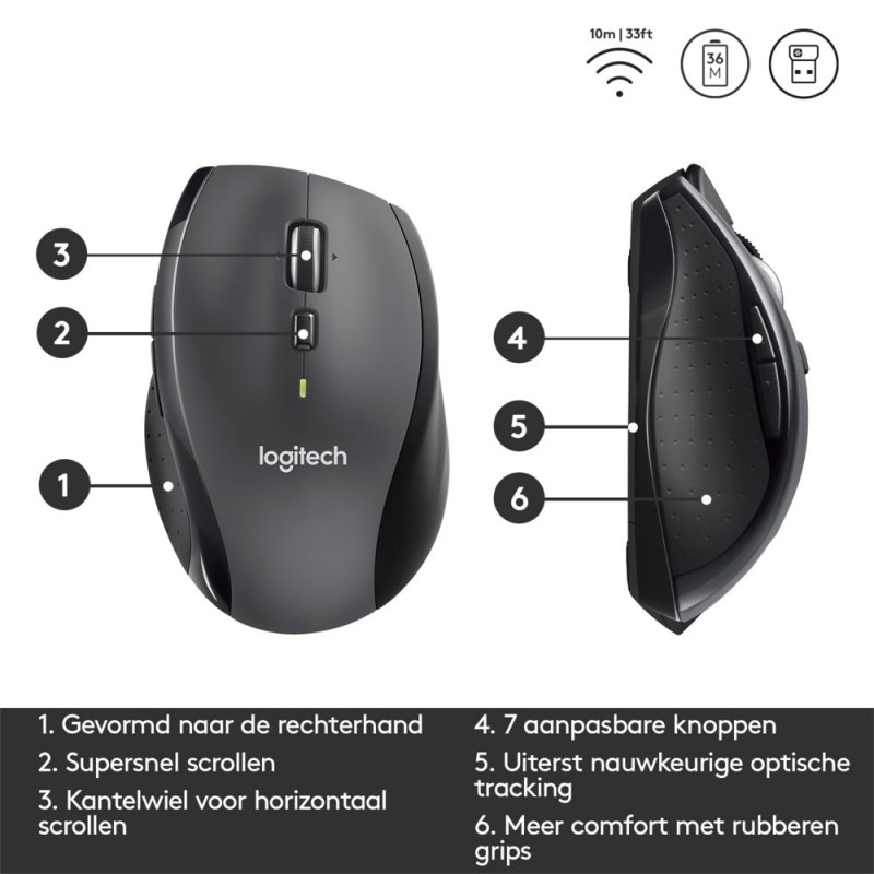 Logitech Marathon M705 | Draadloze Muis | Rechtshandig | RF | 1000 DPI | Zwart