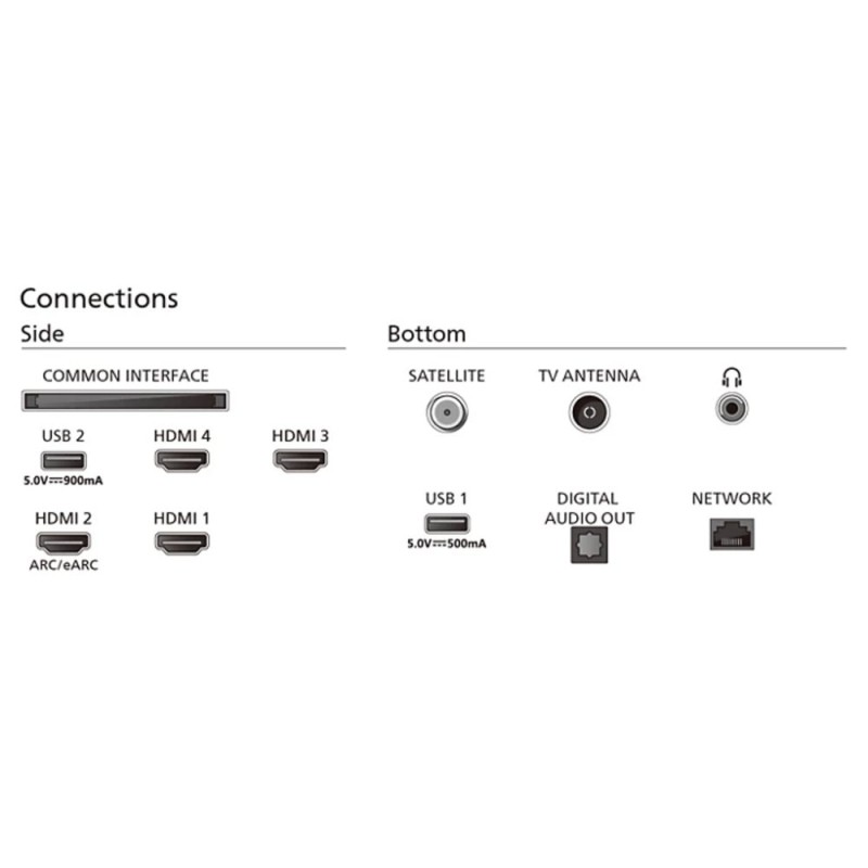 De tv is uitgerust met een DVB‑T2/C/S2‑tuner, 4 gigabit HDMI‑poorten (HDMI 2.1, 48 Gb/s), 2 USB 2.0‑ingangen, optische audio-uitgang, ARC/eARC en een CI+ slot. Met VESA‑montage (300×300 mm), een chroomkleurige afwerking en energiezuinige verpakking – gemaakt van FSC-gecertificeerd materiaal – sluit dit slimme scherm naadloos aan op zowel je interieur als je duurzame ambities.