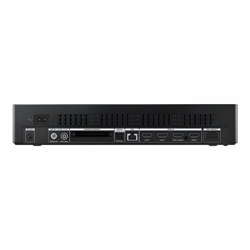 De Samsung The Frame 43'' Ultra HD 4K QLED Smart TV wordt geleverd met de innovatieve One Connect Box, die zorgt voor een opgeruimde en georganiseerde opstelling. De One Connect Box biedt de mogelijkheid om alle kabels en verbindingen op één centrale plek aan te sluiten, waardoor je geen kabels meer direct aan de tv zelf hoeft te bevestigen. Dit zorgt voor een nettere en strakkere uitstraling, waarbij alleen de One Connect kabel naar de tv wordt geleid, die zowel stroom als data doorgeeft.